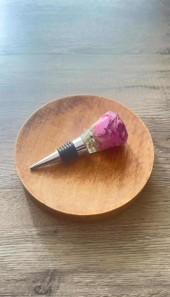 Der Flaschenverschluss wird kopfüber gegossen, wodurch jede Blüte optimal zur Geltung kommt. Dabei können kleine Lufteinschlüsse entstehen, teilweise erst stunden nach dem Giessen. Jedes Stück entwickelt seinen eigenen, natürlichen Charakter – ein echtes Unikat.