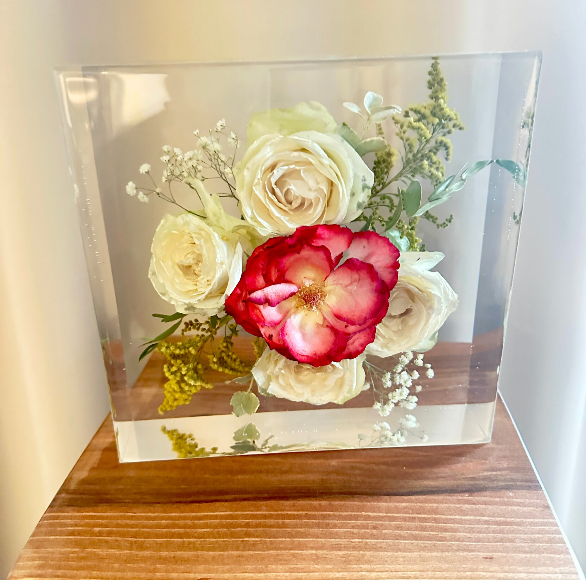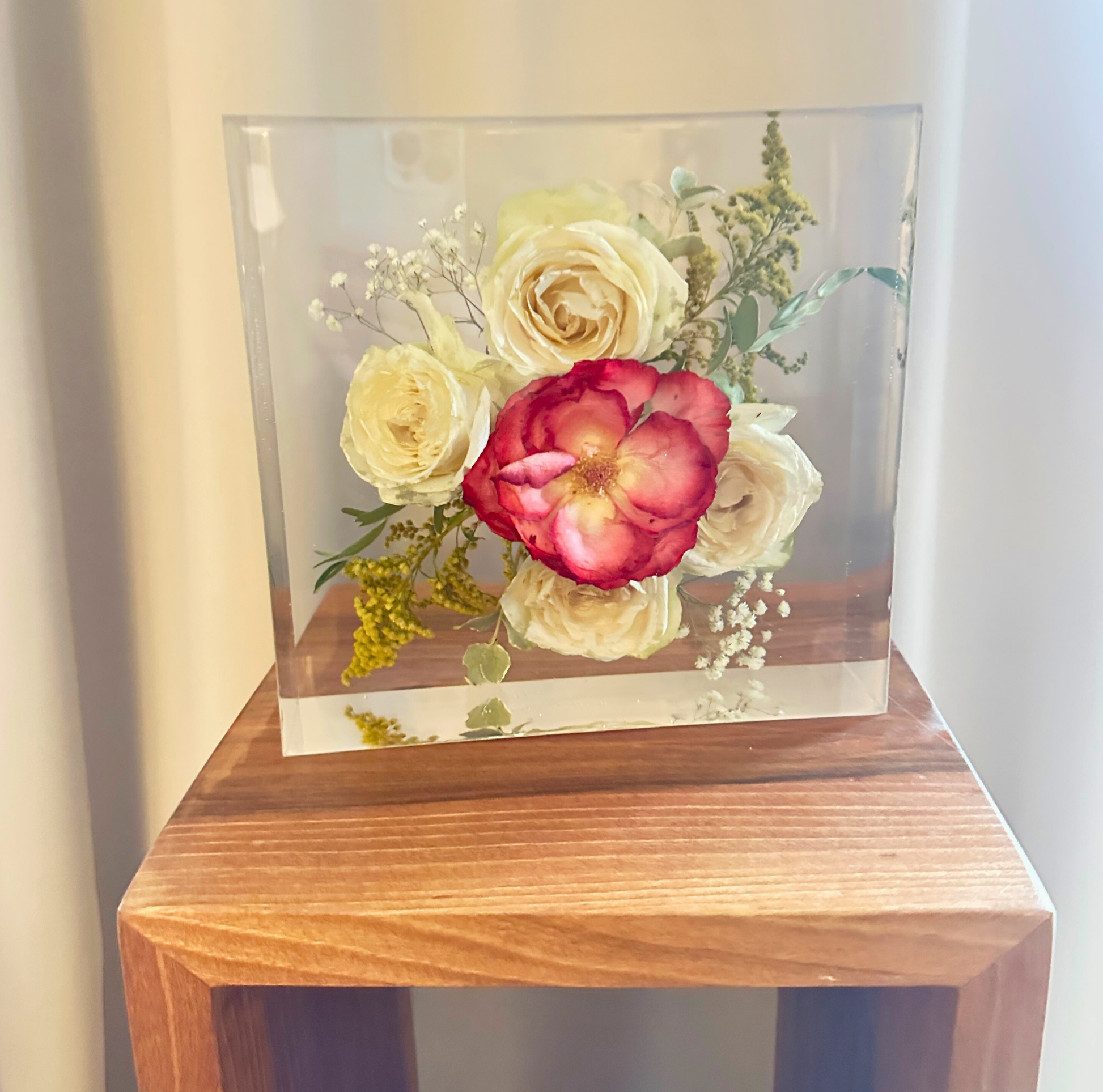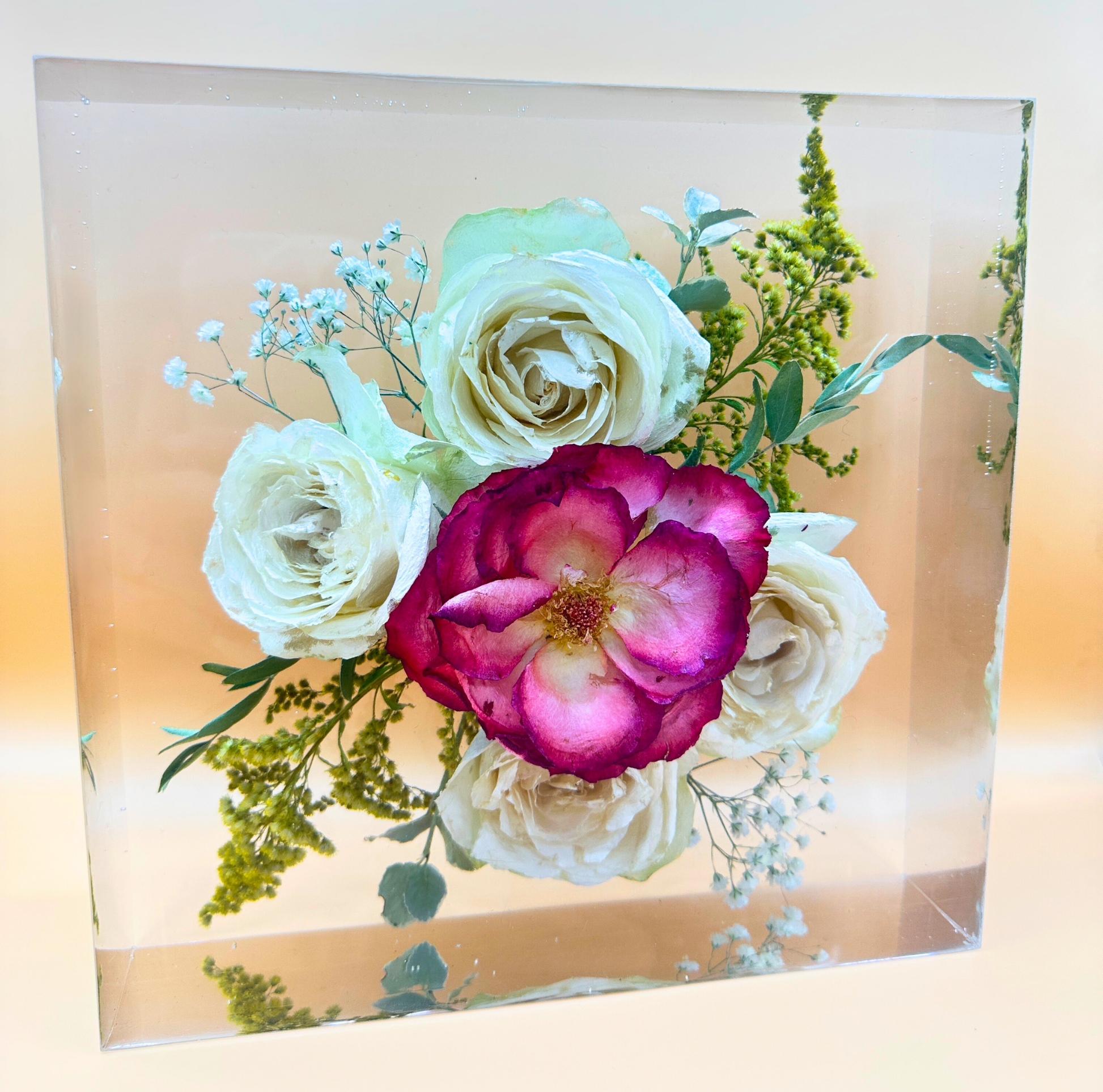 Der kleine Block bewahrt die zarten Details deines Brautstrausses in einer kompakten, eleganten Form.